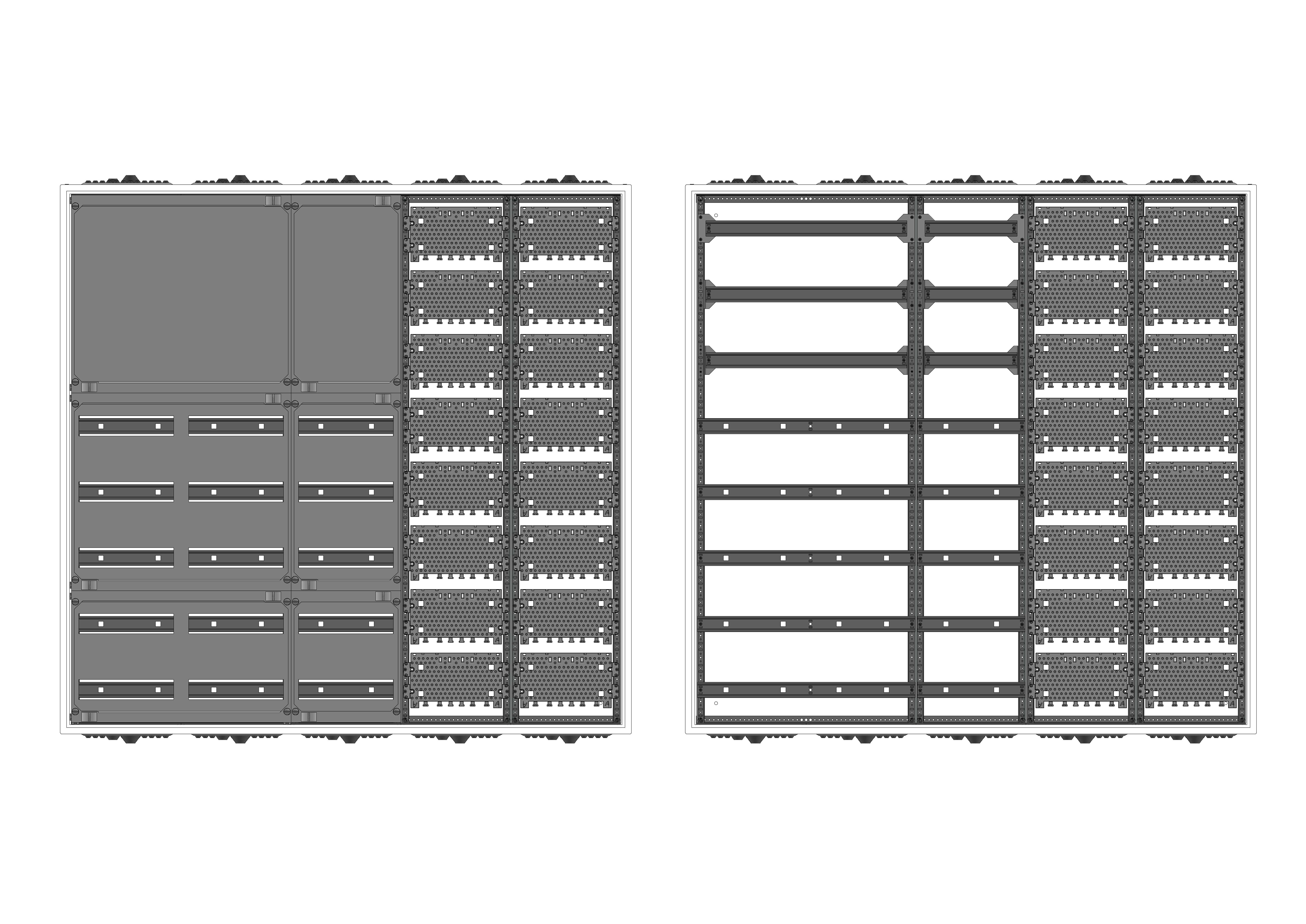 AVK5-8-210-M2-PAutomatenverteiler, AVK, BxHxT = 1300x1250x210Schutzklasse II, IP41, RAL 9016, AufputzBestehend aus:Gehäuse, Doppeltür mit Drehriegel, Flansche NF1(oben) und NF2 (unten), 1x Geräteträger 2-Feld breit 3/5 mit Feldabdeckungen PS, 1x Geräteträger 1-Feld breit 3/5 mit Feldabdeckungen PS, 1x Montageplatte 2-Feld breit