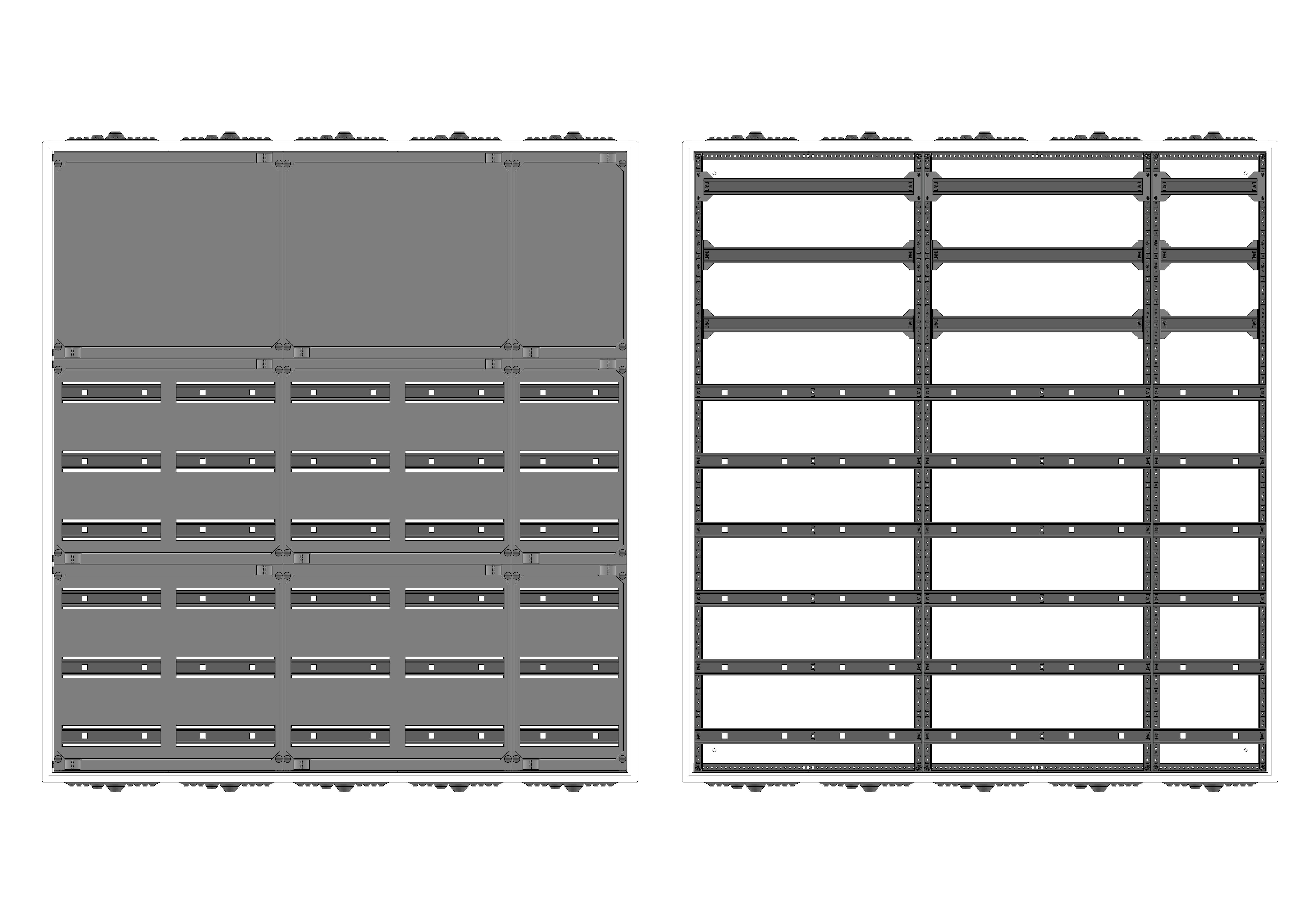AVK5-9-230-S-PAutomatenverteiler, AVK, BxHxT = 1300x1400x230Schutzklasse II, IP54, RAL 7035, AufputzBestehend aus:Gehäuse, Doppeltür mit Schwenkhebel für PHZ, Flansche SF45 (oben) und SF41 (unten), 2x Geräteträger 2-Feld breit 3/6 mit Feldabdeckungen PS, 1x Geräteträger 1-Feld breit 3/6 mit Feldabdeckungen PS