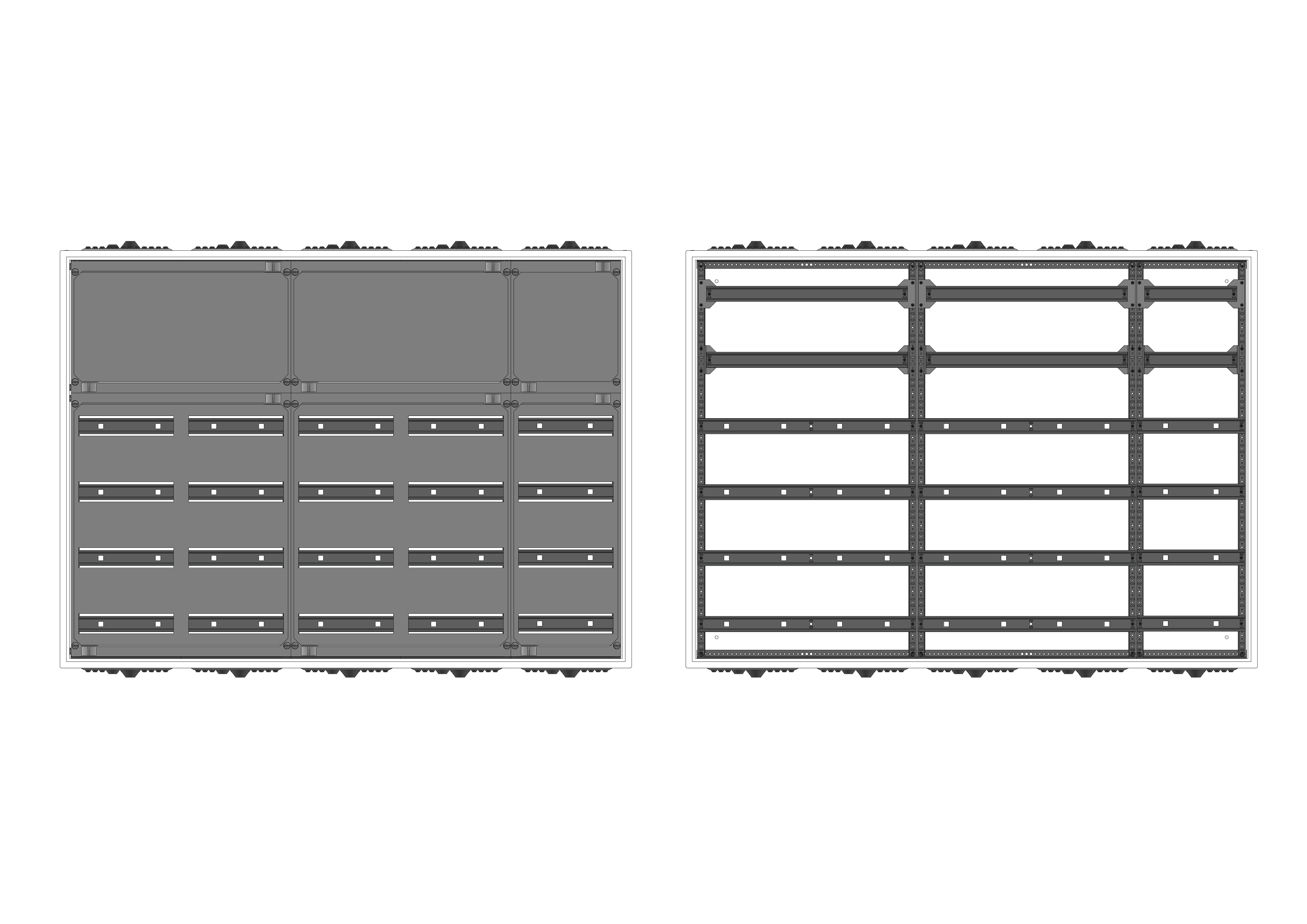 AVK5-6-230-S-PAutomatenverteiler, AVK, BxHxT = 1300x950x230Schutzklasse II, IP54, RAL 7035, AufputzBestehend aus:Gehäuse, Doppeltür mit Schwenkhebel für PHZ, Flansche SF45 (oben) und SF41 (unten), 2x Geräteträger 2-Feld breit 2/4 mit Feldabdeckungen PS, 1x Geräteträger 1-Feld breit 2/4 mit Feldabdeckungen PS
