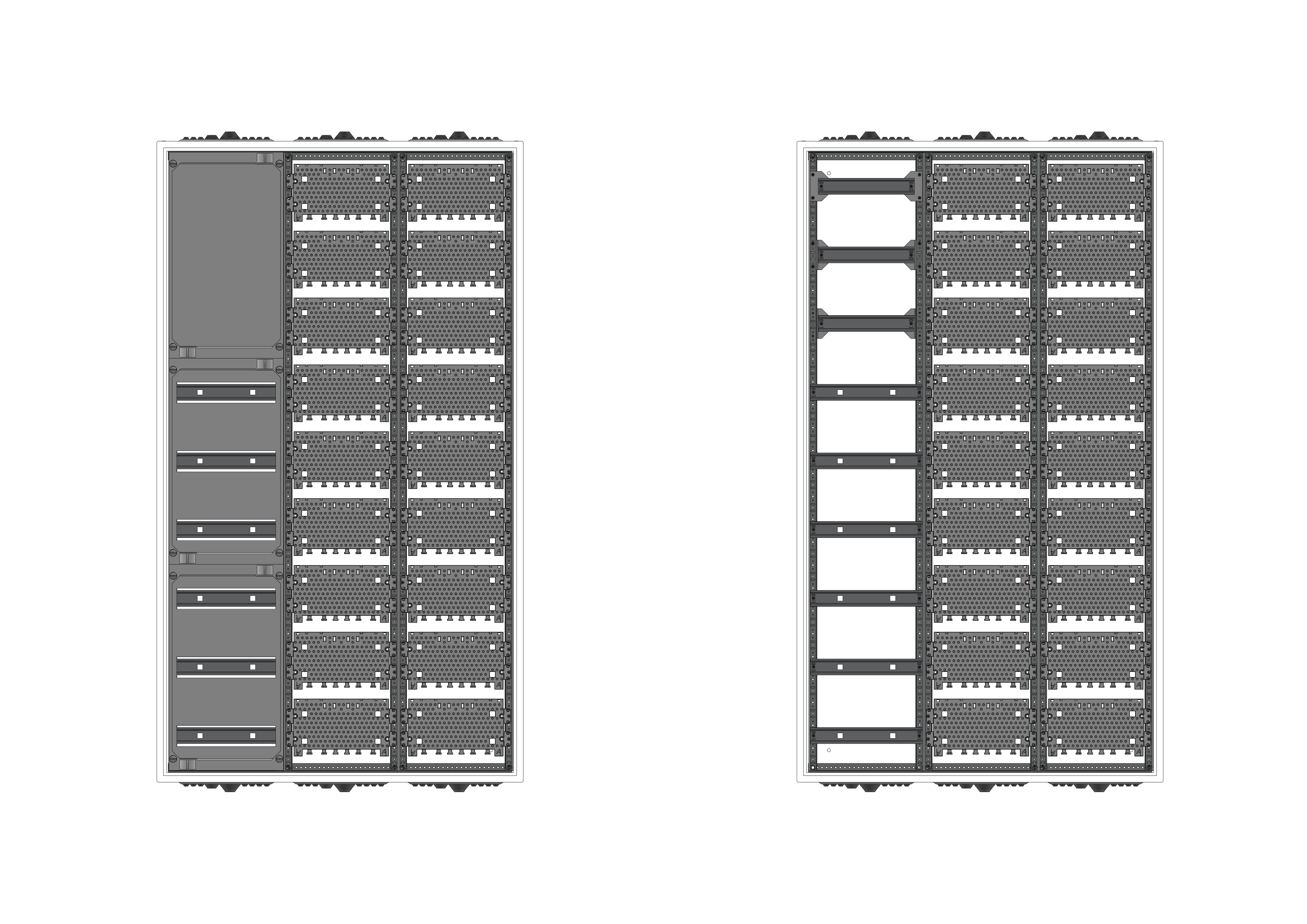 AVK3-9-210-M2-PAutomatenverteiler, AVK, BxHxT = 800x1400x210Schutzklasse II, IP41, RAL 9016, AufputzBestehend aus:Gehäuse, Doppeltür mit Drehriegel, Flansche NF1(oben) und NF2 (unten), 1x Geräteträger 1-Feld breit 3/6 mit Feldabdeckungen PS, 1x Montageplatte 2-Feld breit