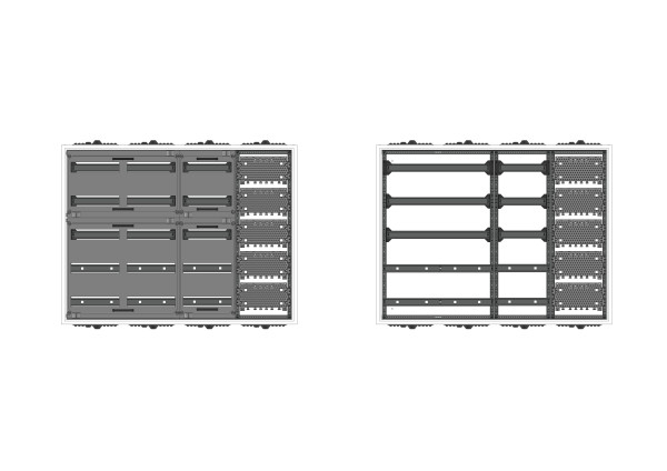 UVK4-5-210-M1Automatenverteiler, UVK, BxHxT = 1050x800x210Schutzklasse II, IP41, RAL 9016, UnterputzBestehend aus:Gehäuse, Doppeltür mit Drehriegel, Flansche NF1 (oben) und NF2 (unten), 1x Geräteträger 2-Feld breit 2/3 mit Feldabdeckungen PRL, 1x Geräteträger 1-Feld breit 2/3 mit Feldabdeckungen PRL, 1x Montageplatte 1-Feld breit