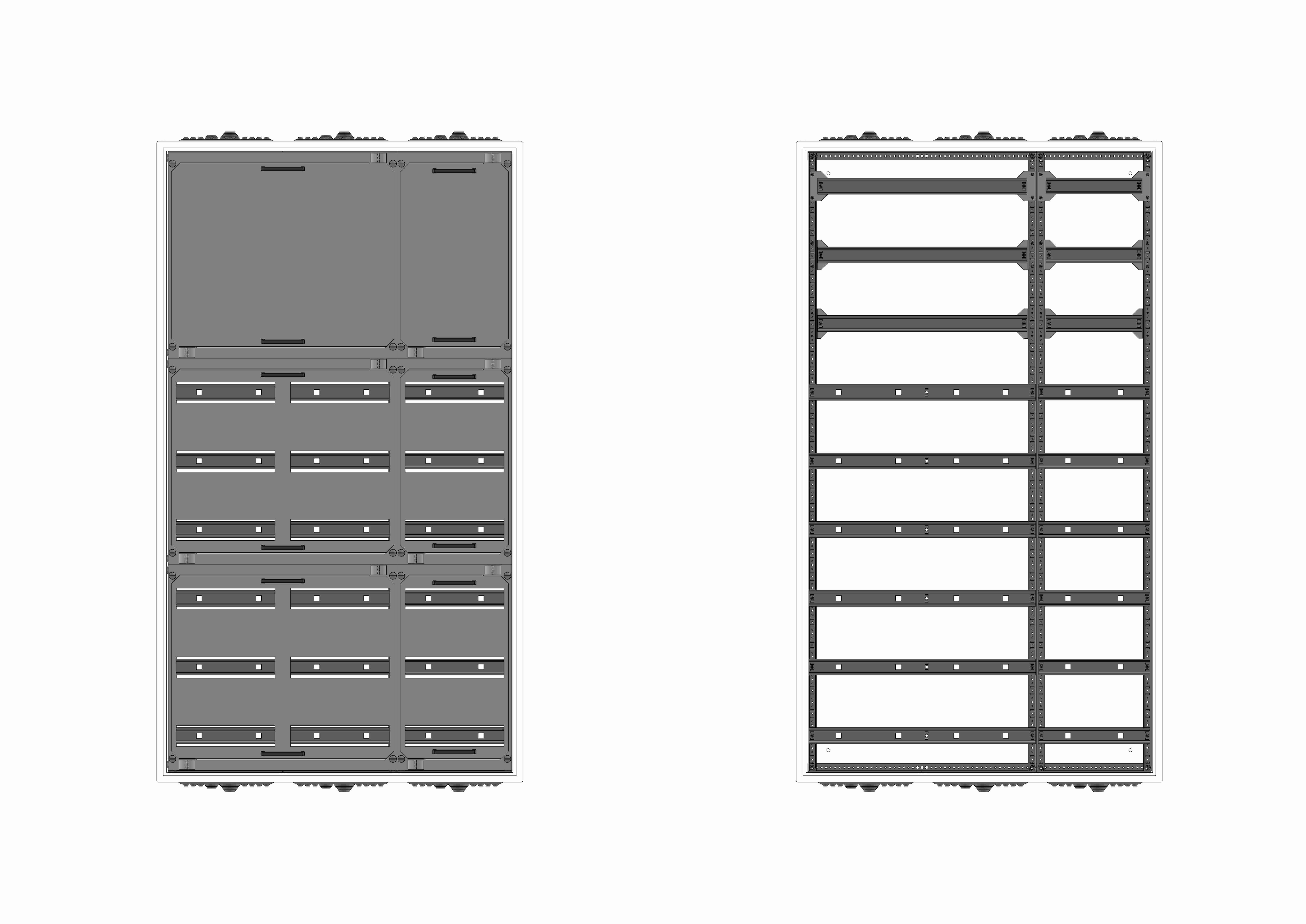 AVK3-9-230-SAutomatenverteiler, AVK, BxHxT = 800x1400x230Schutzklasse II, IP54, RAL 7035, AufputzBestehend aus:Gehäuse, Einzeltür mit Schwenkhebel für PHZ, Flansche SF45 (oben) und SF41 (unten), 1x Geräteträger 2-Feld breit 3/6 mit Feldabdeckungen PRL, 1x Geräteträger 1-Feld breit 3/6 mit Feldabdeckungen PRL