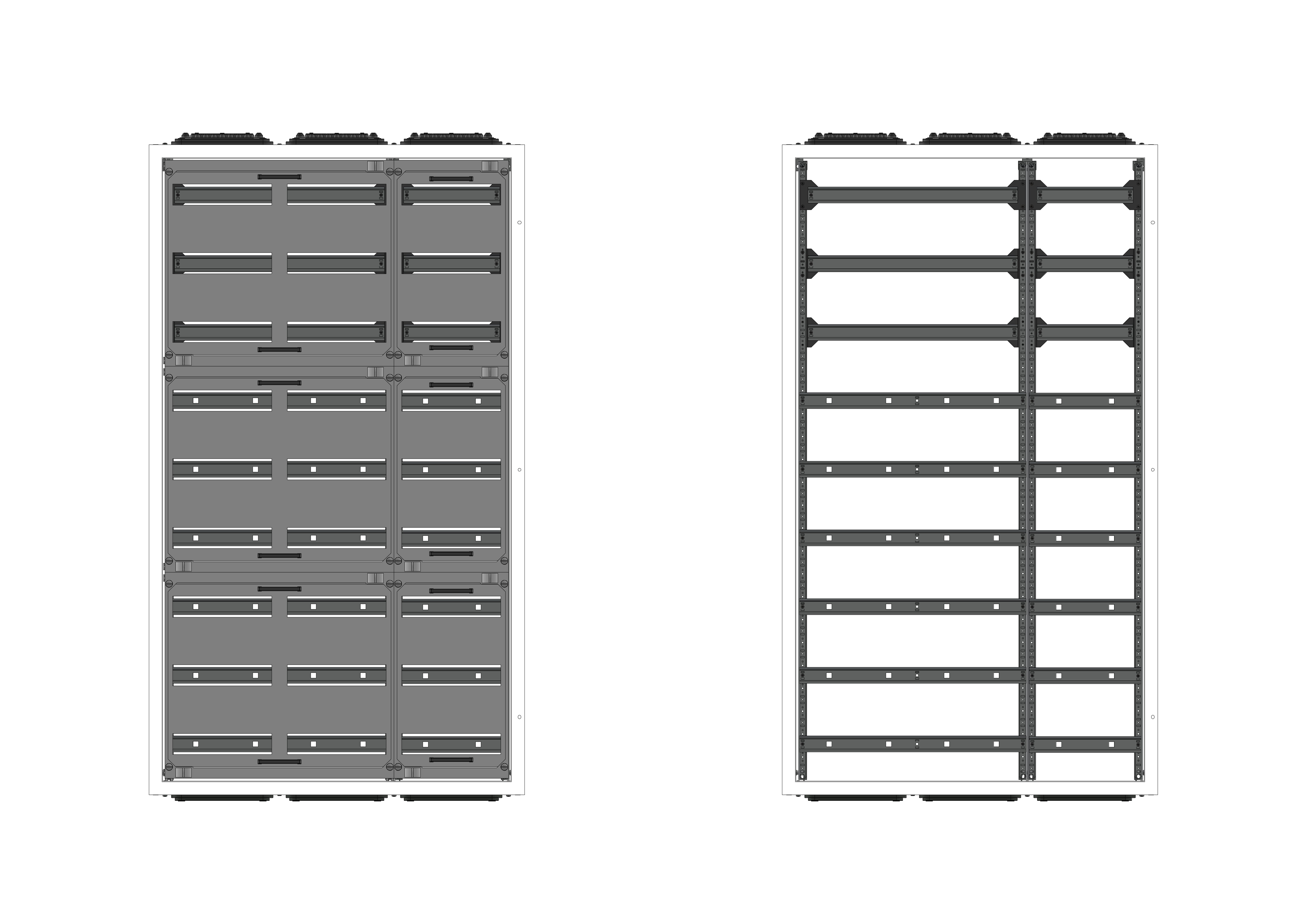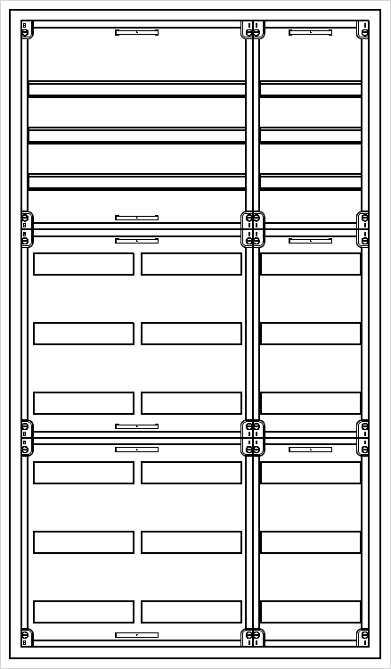 AVK3-9-300Automatenverteiler, AVK, BxHxT = 820x1420x300Schutzklasse II, IP54, RAL 7035, AufputzBestehend aus:Gehäuse, Einzeltür mit Schwenkhebel für PHZ, Flansche SF35 (oben) und SF32 (unten), 1x Geräteträger 3-Feld breit 3/6 mit Feldabdeckungen PRL