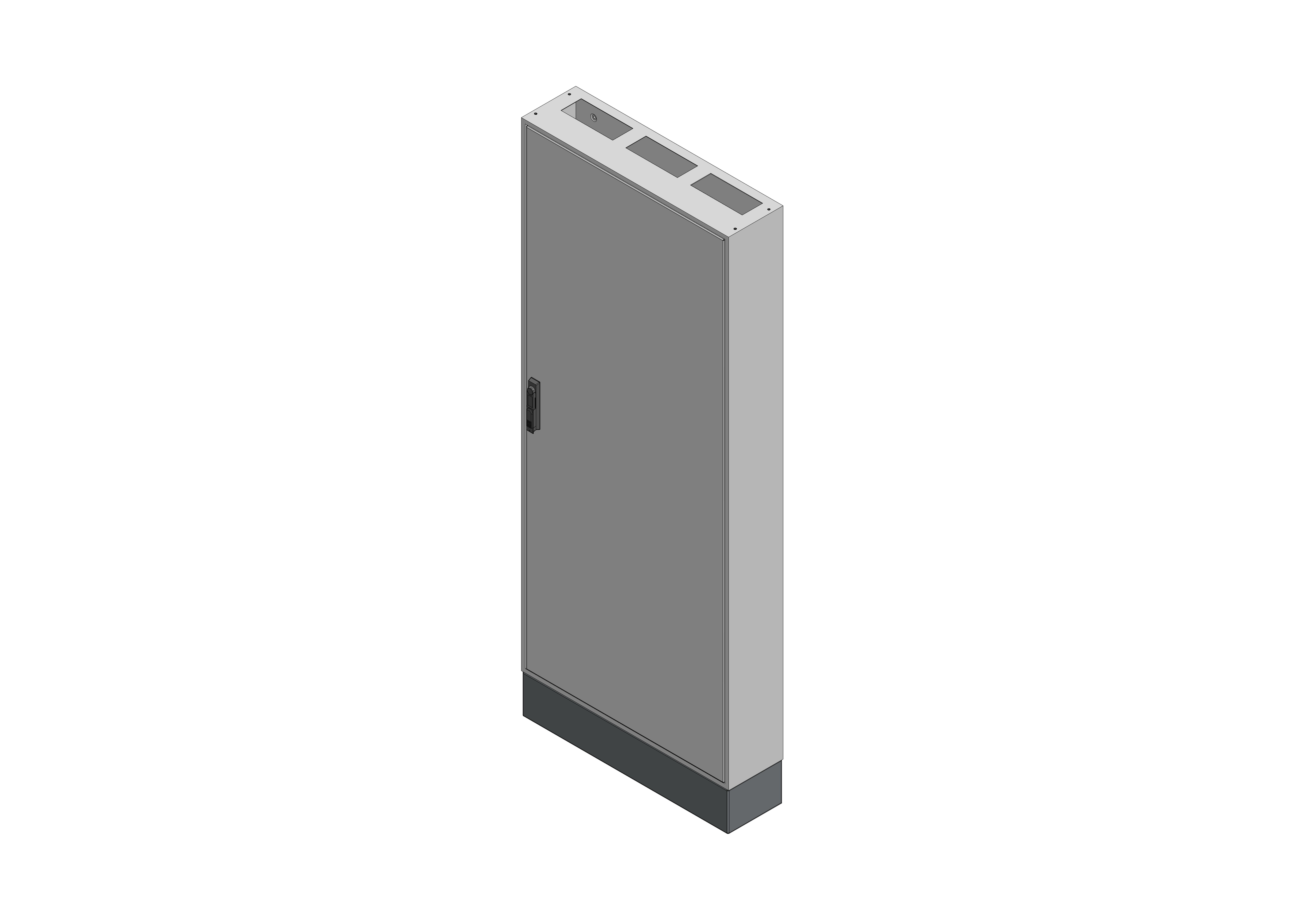L-SVK3-12-210 Leergehäuse Standverteilung, SVK, BxHxT = 800x1850+150x210 Schutzklasse II, IP41, RAL 7035 Bestehend aus: Gehäuse, Sockel, Einzeltür mit Schwenkhebel für PHZ, Wandhalterung, ohne Flansche, inkl. Verpackung