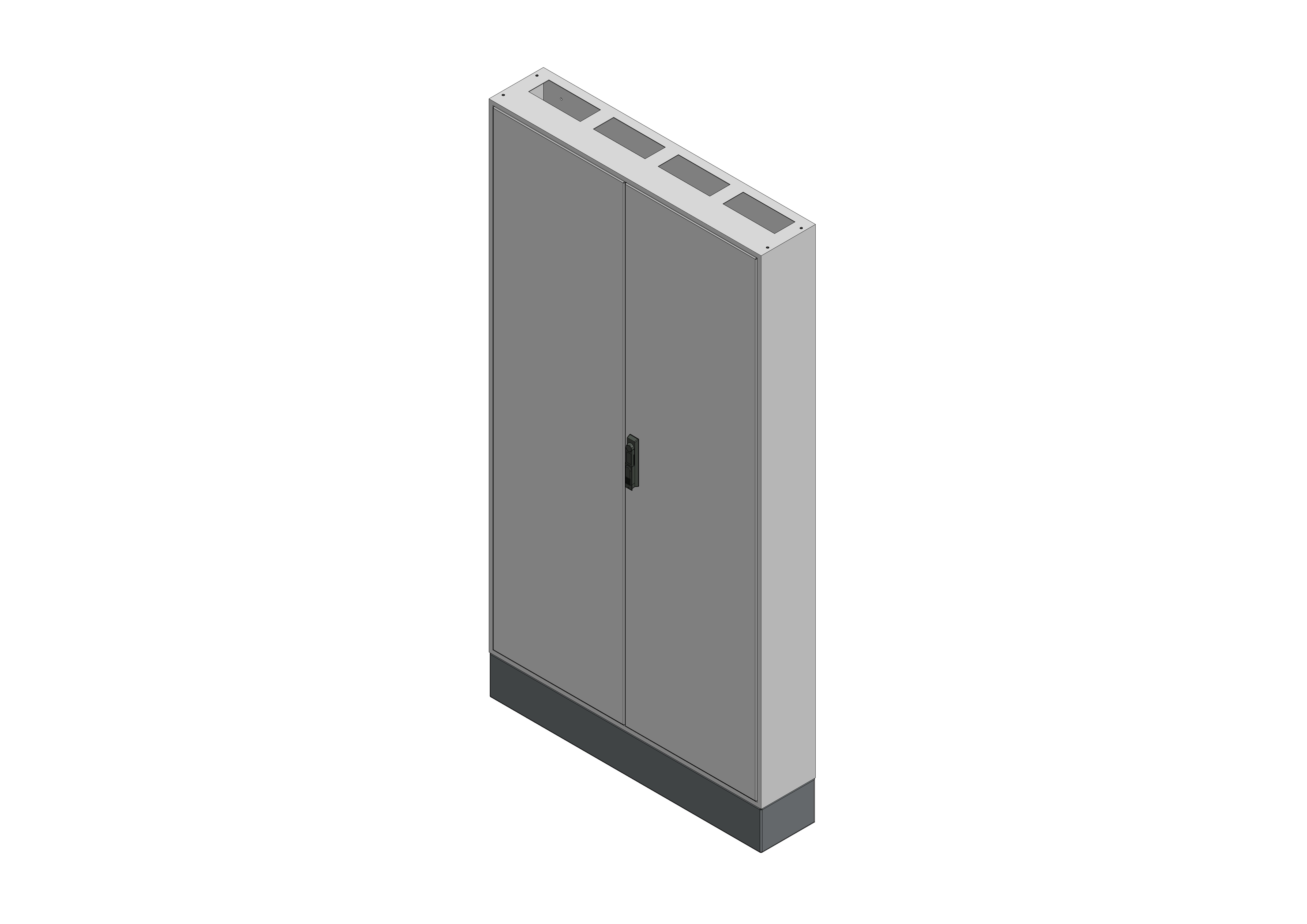 L-SVK4-12-210Leergehäuse Standverteilung, SVK, BxHxT = 1050x1850+150x210Schutzklasse II, IP41, RAL 7035Bestehend aus:Gehäuse, Sockel, Doppeltür mit Schwenkhebel für PHZ, Wandhalterung, ohne Flansche, inkl. Verpackung