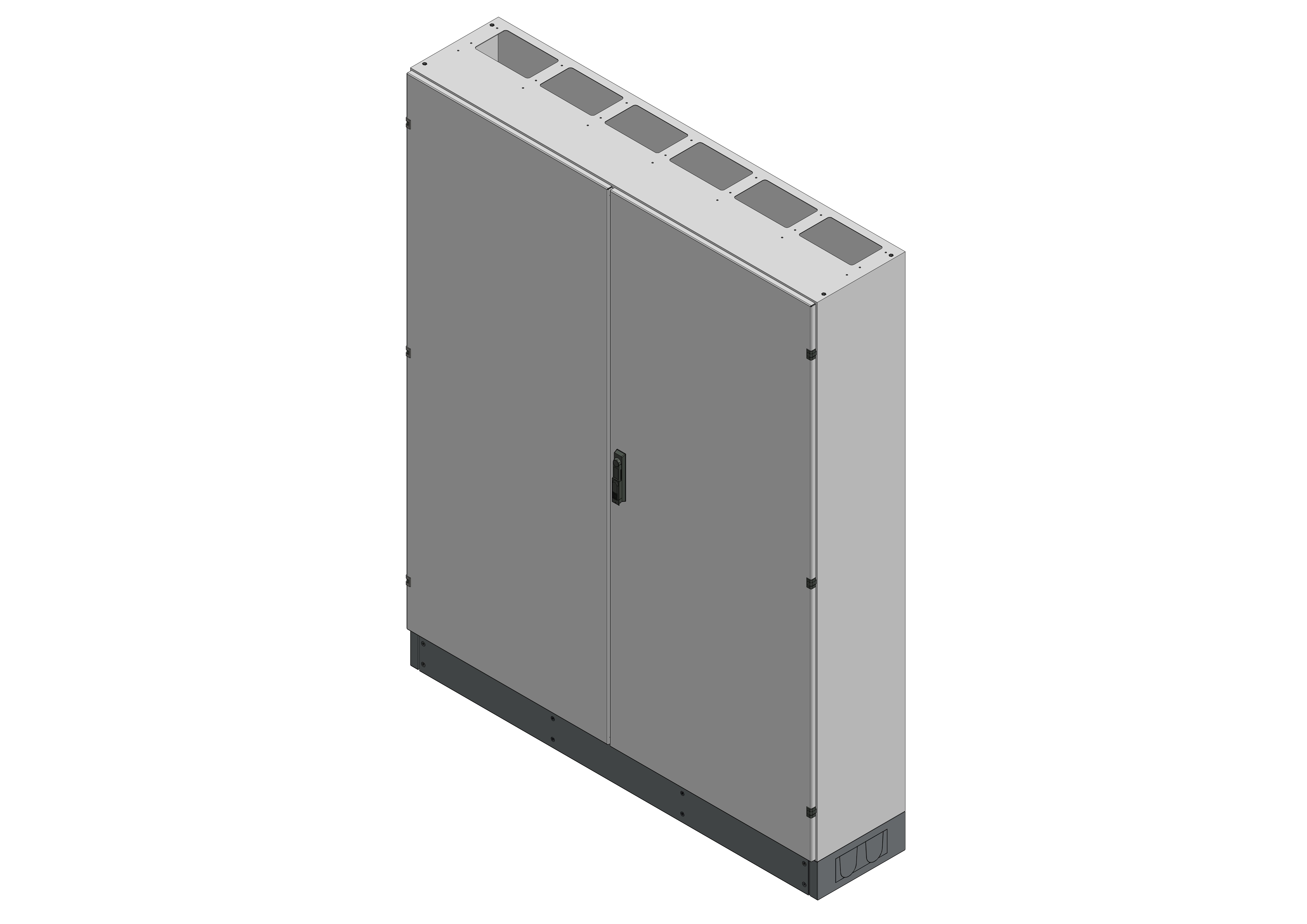 L-SVK6-12-360Leergehäuse Standverteilung, SVK, BxHxT = 1570x1870+130x360Schutzklasse II, IP54, RAL 7035Bestehend aus:Gehäuse, Sockel, Doppeltür mit Schwenkhebel für PHZ, Wandhalterung, ohne Flansche, inkl. Verpackung