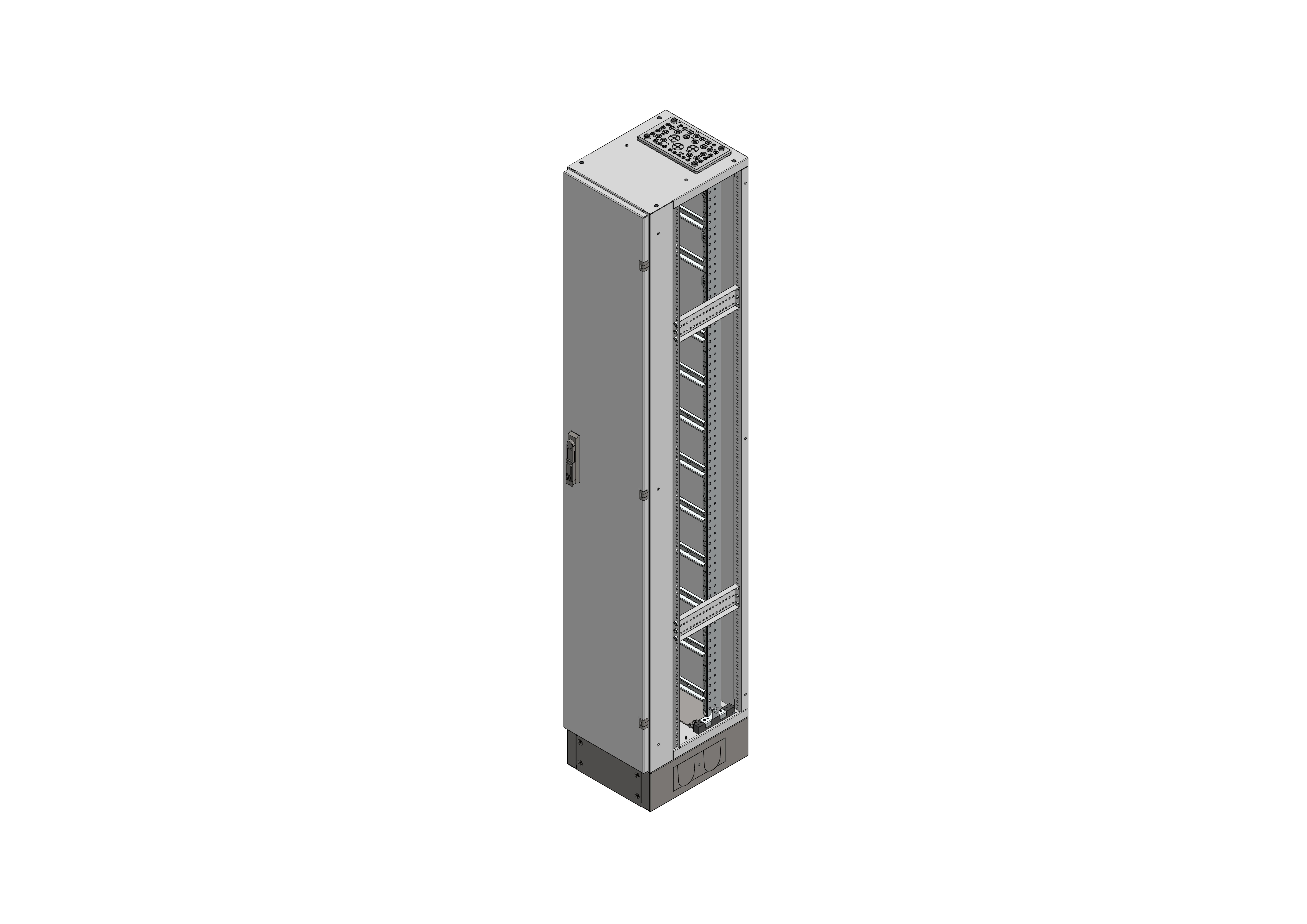 RSVB1-12-400Reihenschaltschrank, RSVB, BxHxT = 320x1870+130x400Schutzklasse I, IP54, RAL 7035offene Seitenwände, Seitenwandprofil gekantet, für SchrankverbindungBestehend aus:Gehäuse, Sockel, Einzeltür mit Schwenkhebel für PHZ, Flansche SF35 (oben) und SF32 (unten), komplettem Geräteträger mit Feldabdeckungen PRL, Wandhalterung, inkl. Verpackung