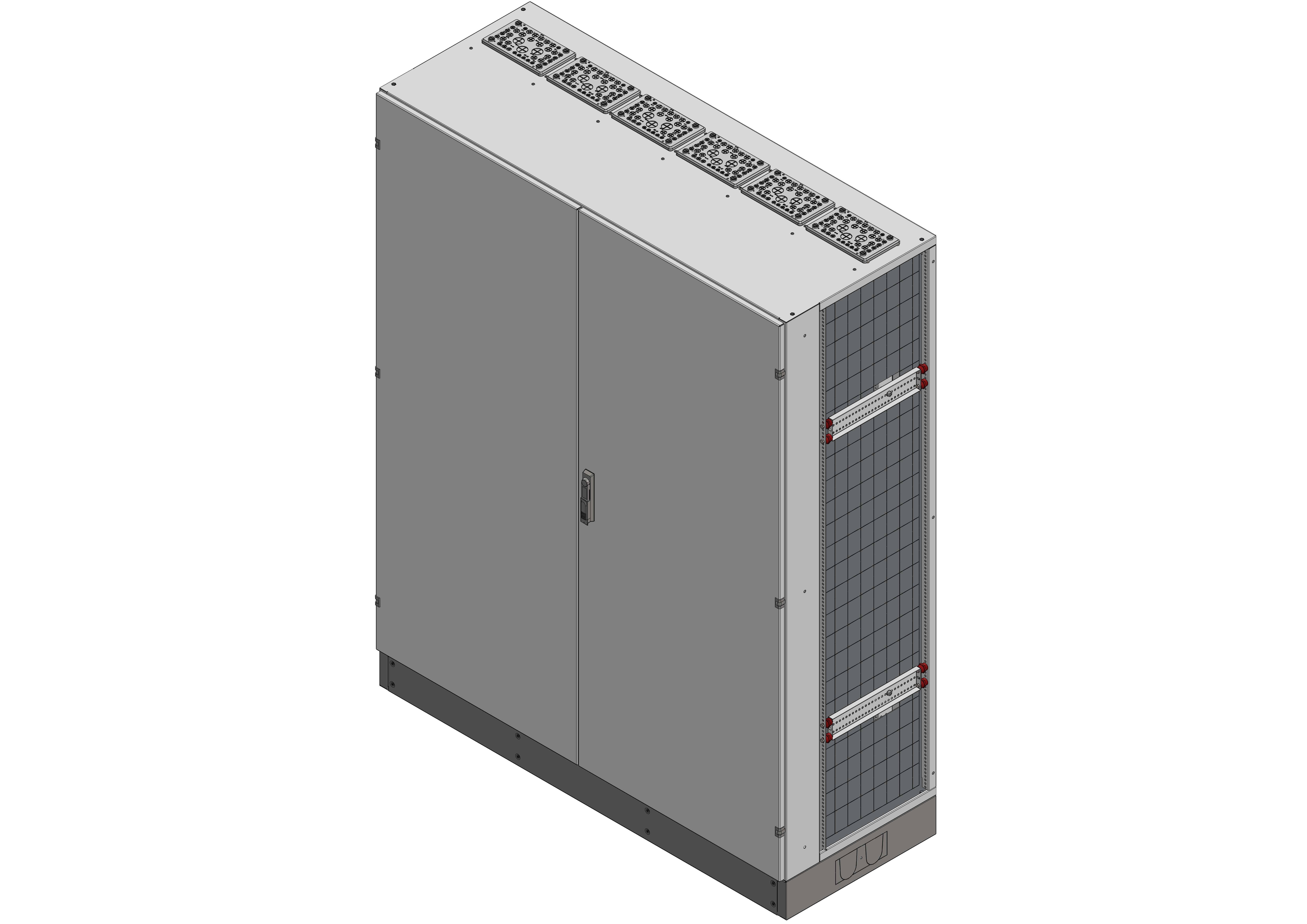 RSVK6-12-600 Reihenschaltschrank, RSVK, BxHxT = 1570x1870+130x600 Schutzklasse II, IP54, RAL 7035 offene Seitenwände, Seitenwandprofil gekantet, für Schrankverbindung Bestehend aus: Gehäuse, Sockel, Doppeltür mit Schwenkhebel für PHZ, Flansche SF35 (oben) und SF32 (unten), komplettem Geräteträger mit Feldabdeckungen PRL, Wandhalterung, inkl. Verpackung