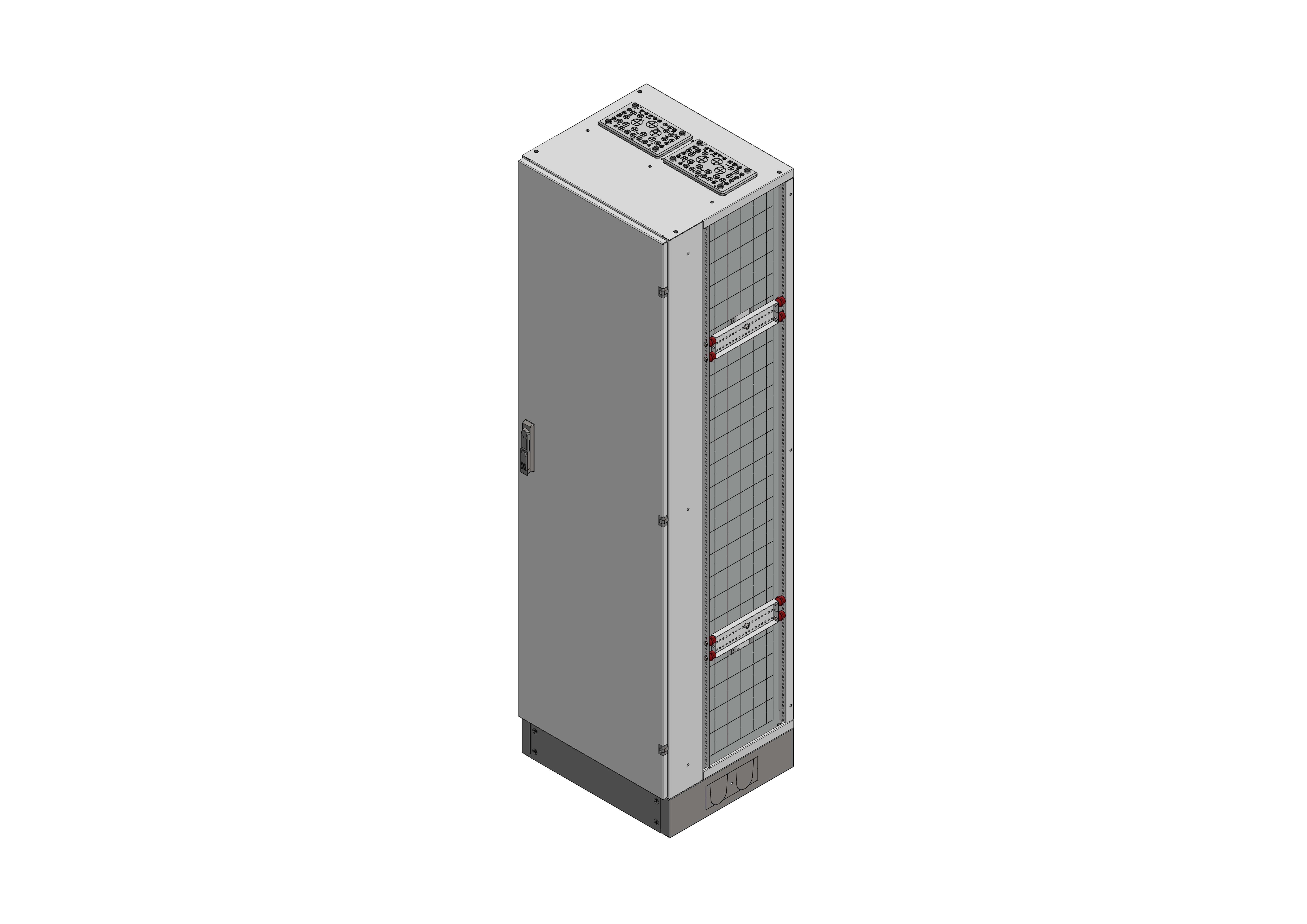 RSVK2-12-500Reihenschaltschrank, RSVK, BxHxT = 570x1870+130x500Schutzklasse II, IP54, RAL 7035offene Seitenwände, Seitenwandprofil gekantet, für SchrankverbindungBestehend aus:Gehäuse, Sockel, Einzeltür mit Schwenkhebel für PHZ, Flansche SF35 (oben) und SF32 (unten), komplettem Geräteträger mit Feldabdeckungen PRL, Wandhalterung, inkl. Verpackung