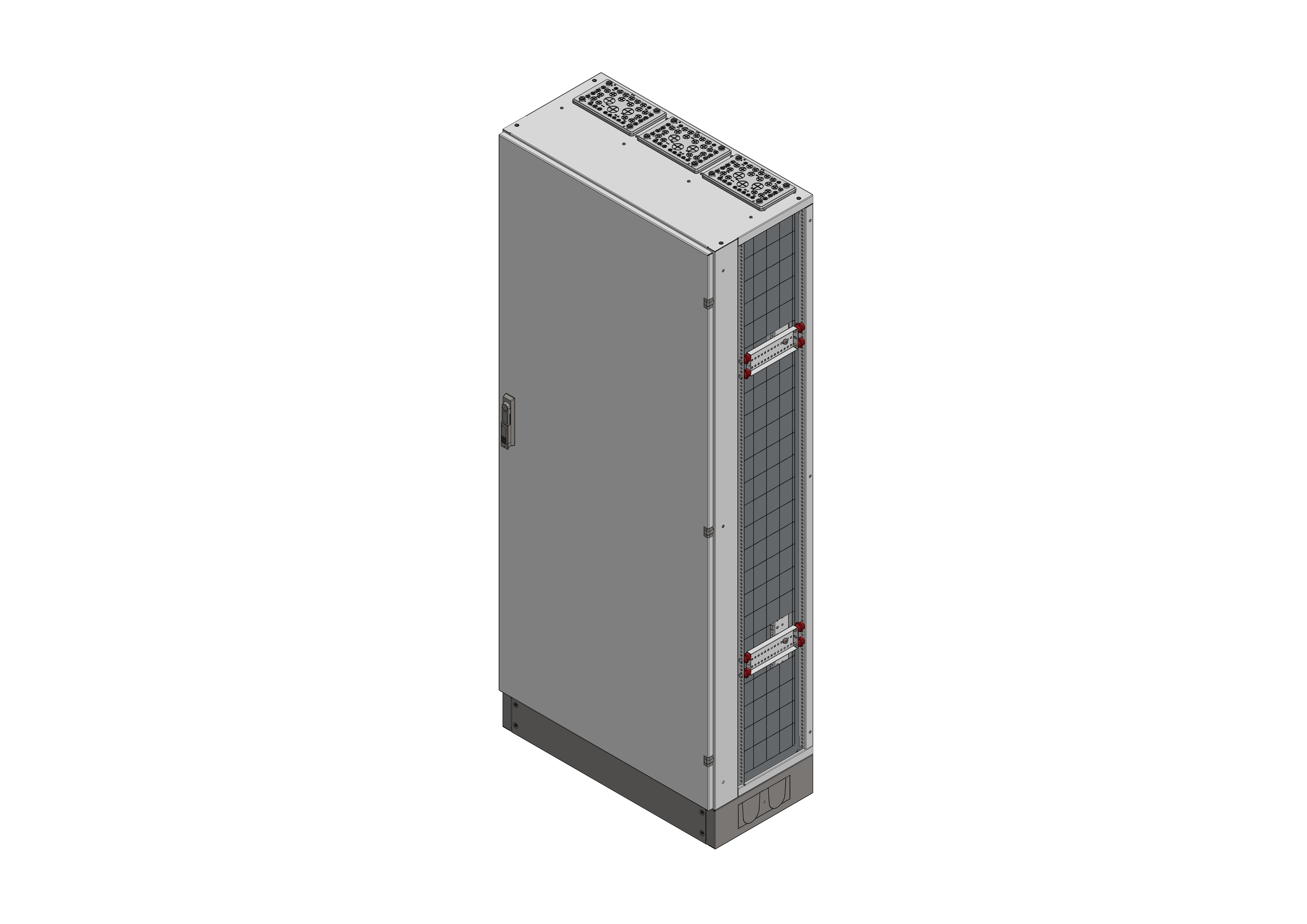 RSVK3-12-400Reihenschaltschrank, RSVK, BxHxT = 820x1870+130x400Schutzklasse II, IP54, RAL 7035offene Seitenwände, Seitenwandprofil gekantet, für SchrankverbindungBestehend aus:Gehäuse, Sockel, Einzeltür mit Schwenkhebel für PHZ, Flansche SF35 (oben) und SF32 (unten), komplettem Geräteträger mit Feldabdeckungen PRL, Wandhalterung, inkl. Verpackung