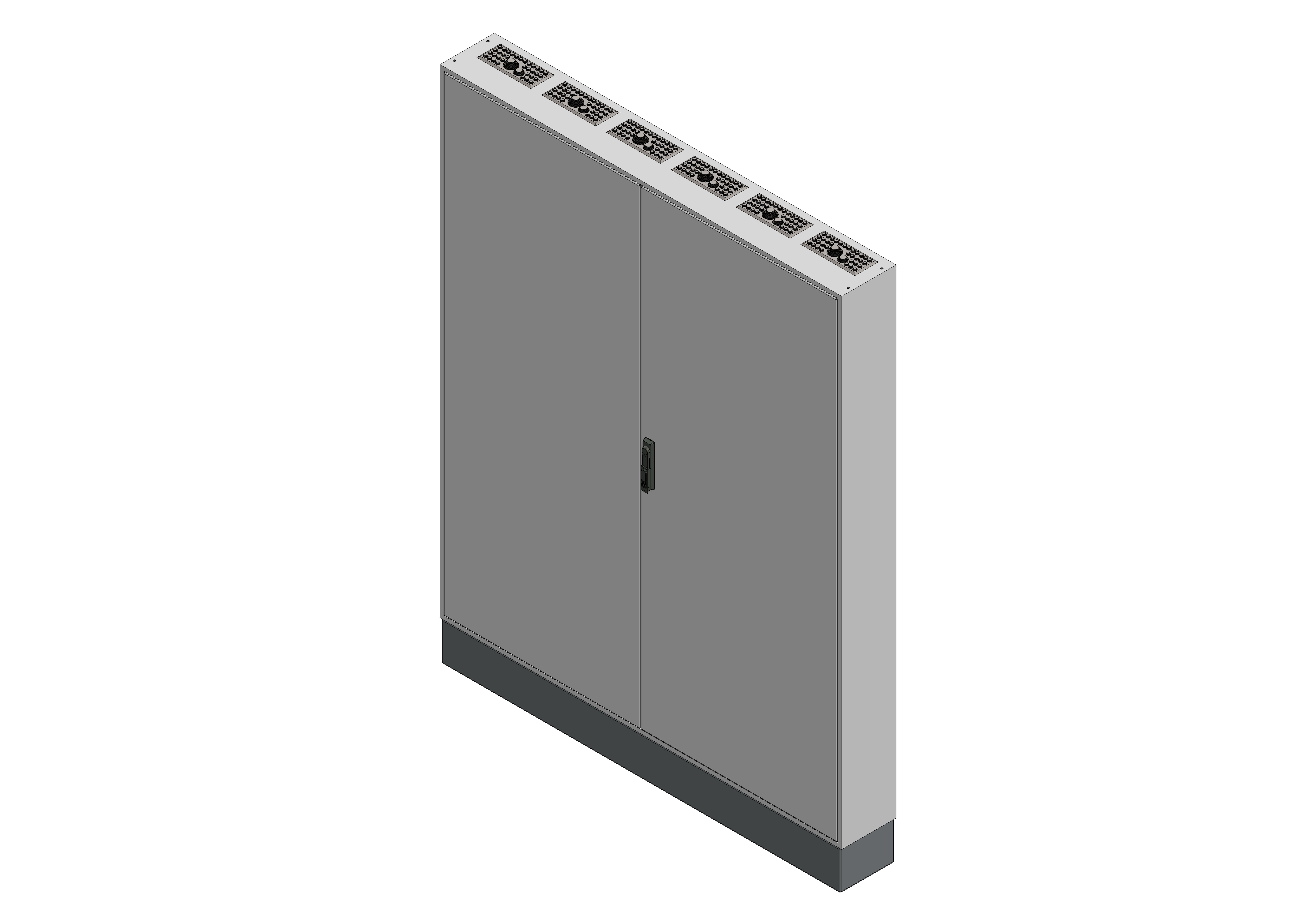 SVK6-12-210 Standverteilung, SVK, BxHxT = 1550x1850+150x210 Schutzklasse II, IP41, RAL 7035 Bestehend aus: Gehäuse, Sockel, Doppeltür mit Schwenkhebel für PHZ, Flansche NF1, komplettem Geräteträger mit Feldabdeckungen PRL, Wandhalterung, inkl. Verpackung