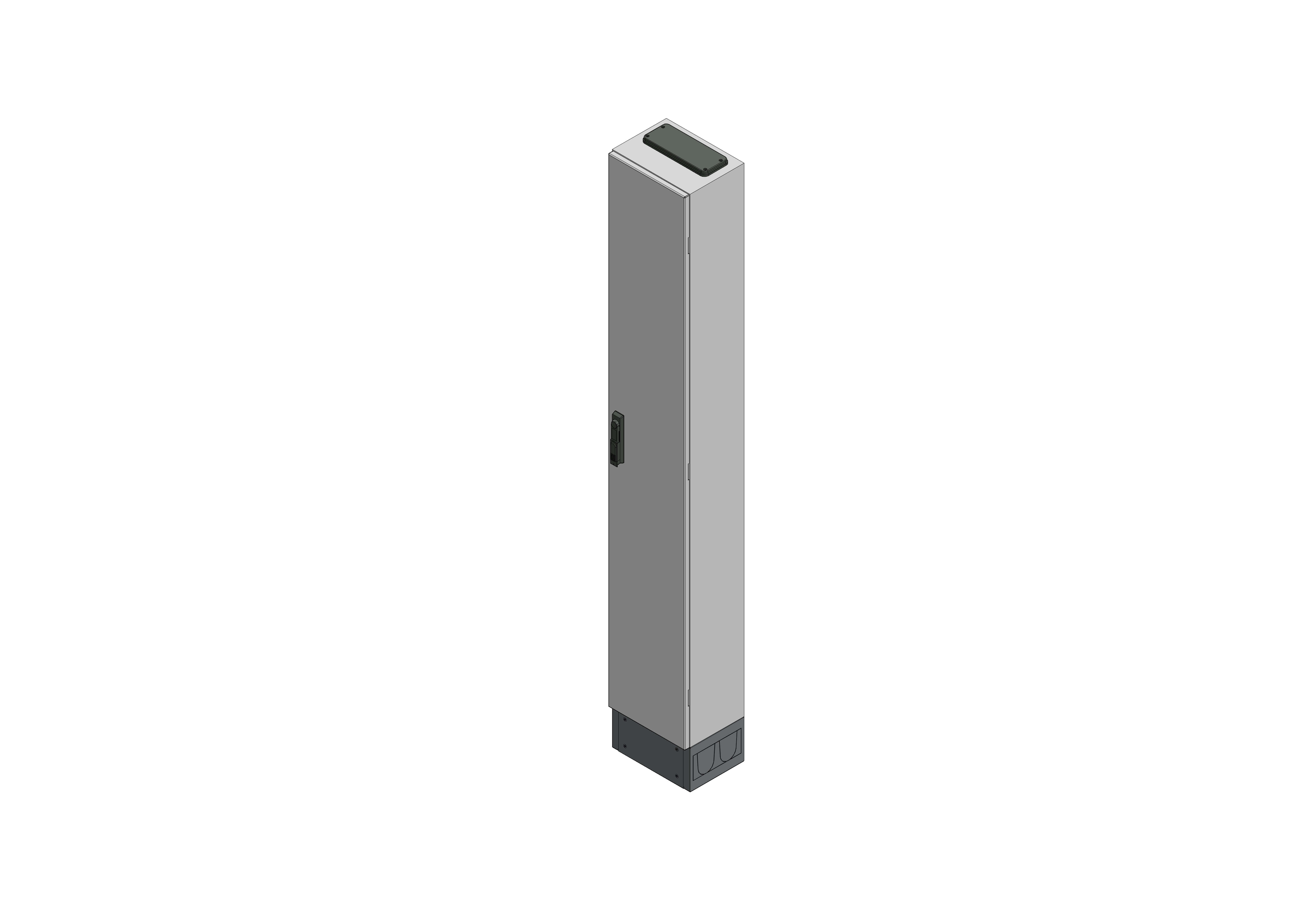 SVK1-12-230Standverteilung, SVK, BxHxT = 300x1850+150x230Schutzklasse II, IP54, RAL 7035Bestehend aus:Gehäuse, Sockel, Einzeltür mit Schwenkhebel für PHZ, Flansche SF45 (oben) und SF41 (unten), komplettem Geräteträger mit Feldabdeckungen PRL, Wandhalterung, inkl. Verpackung