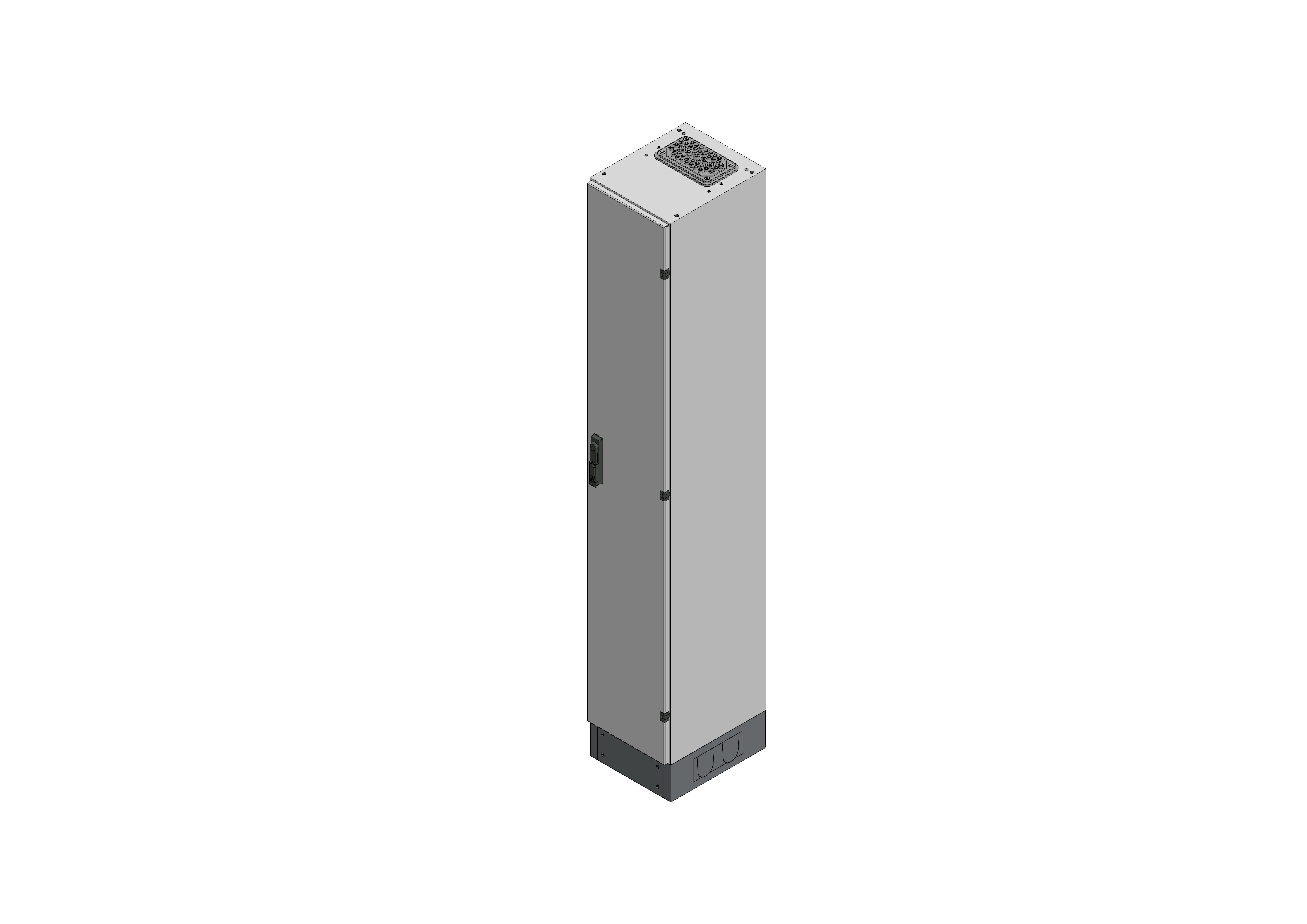SVK1-12-400Standverteilung, SVK, BxHxT = 320x1870+130x400Schutzklasse II, IP54, RAL 7035Bestehend aus:Gehäuse, Sockel, Einzeltür mit Schwenkhebel für PHZ, Flansche SF35 (oben) und SF32 (unten), komplettem Geräteträger mit Feldabdeckungen PRL, Wandhalterung, inkl. Verpackung
