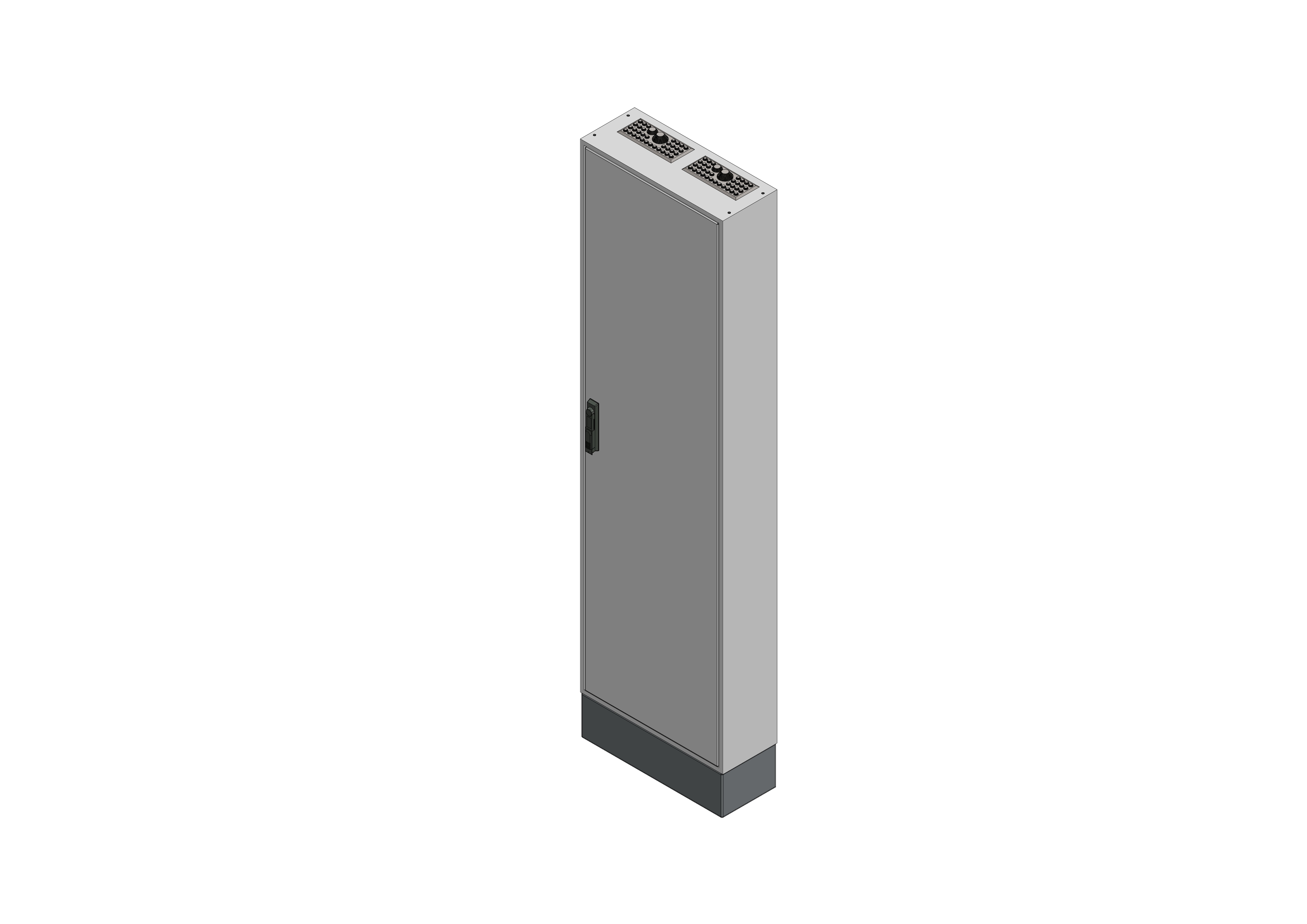 SVK2-12-210Standverteilung, SVK, BxHxT = 550x1850+150x210Schutzklasse II, IP41, RAL 7035Bestehend aus:Gehäuse, Sockel, Einzeltür mit Schwenkhebel für PHZ, Flansche NF1, komplettem Geräteträger mit Feldabdeckungen PRL, Wandhalterung, inkl. Verpackung
