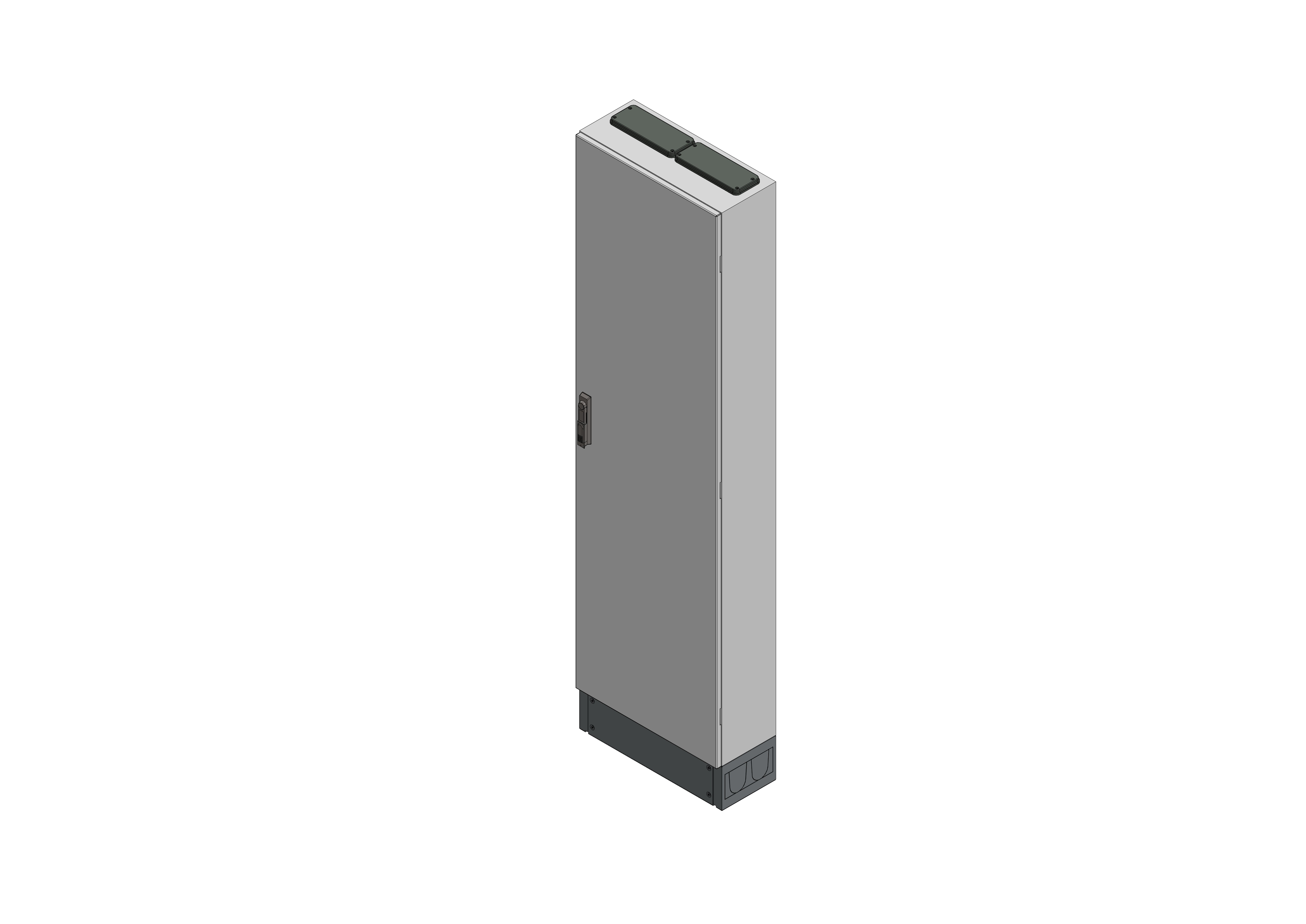 SVK2-12-300Standverteilung, SVK, BxHxT = 570x1870+130x300Schutzklasse II, IP54, RAL 7035Bestehend aus:Gehäuse, Sockel, Einzeltür mit Schwenkhebel für PHZ, Flansche SF35 (oben) und SF32 (unten), komplettem Geräteträger mit Feldabdeckungen PRL, Wandhalterung, inkl. Verpackung