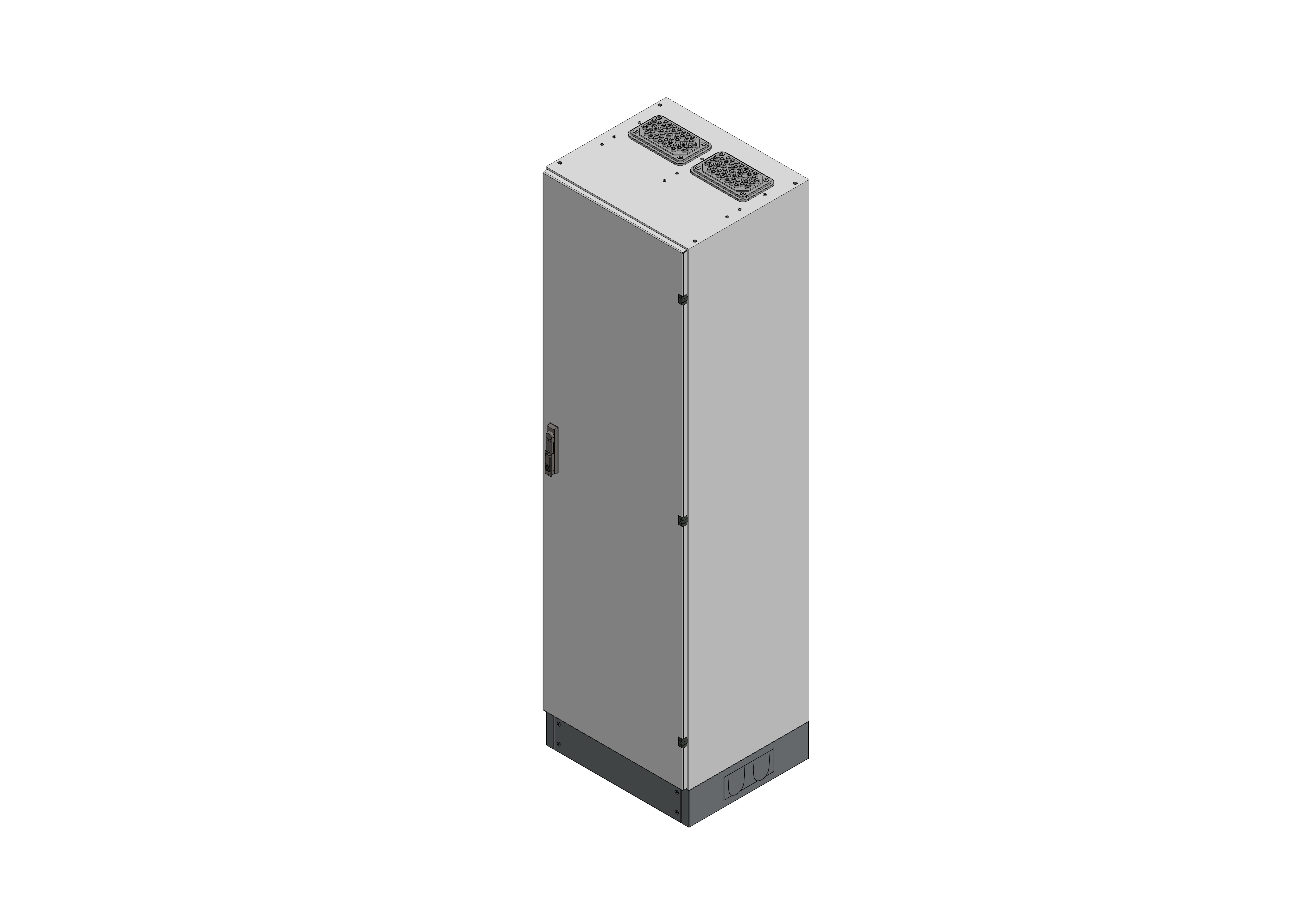 SVK2-12-500Standverteilung, SVK, BxHxT = 570x1870+130x500Schutzklasse II, IP54, RAL 7035Bestehend aus:Gehäuse, Sockel, Einzeltür mit Schwenkhebel für PHZ, Flansche SF35 (oben) und SF32 (unten), komplettem Geräteträger mit Feldabdeckungen PRL, Wandhalterung, inkl. Verpackung