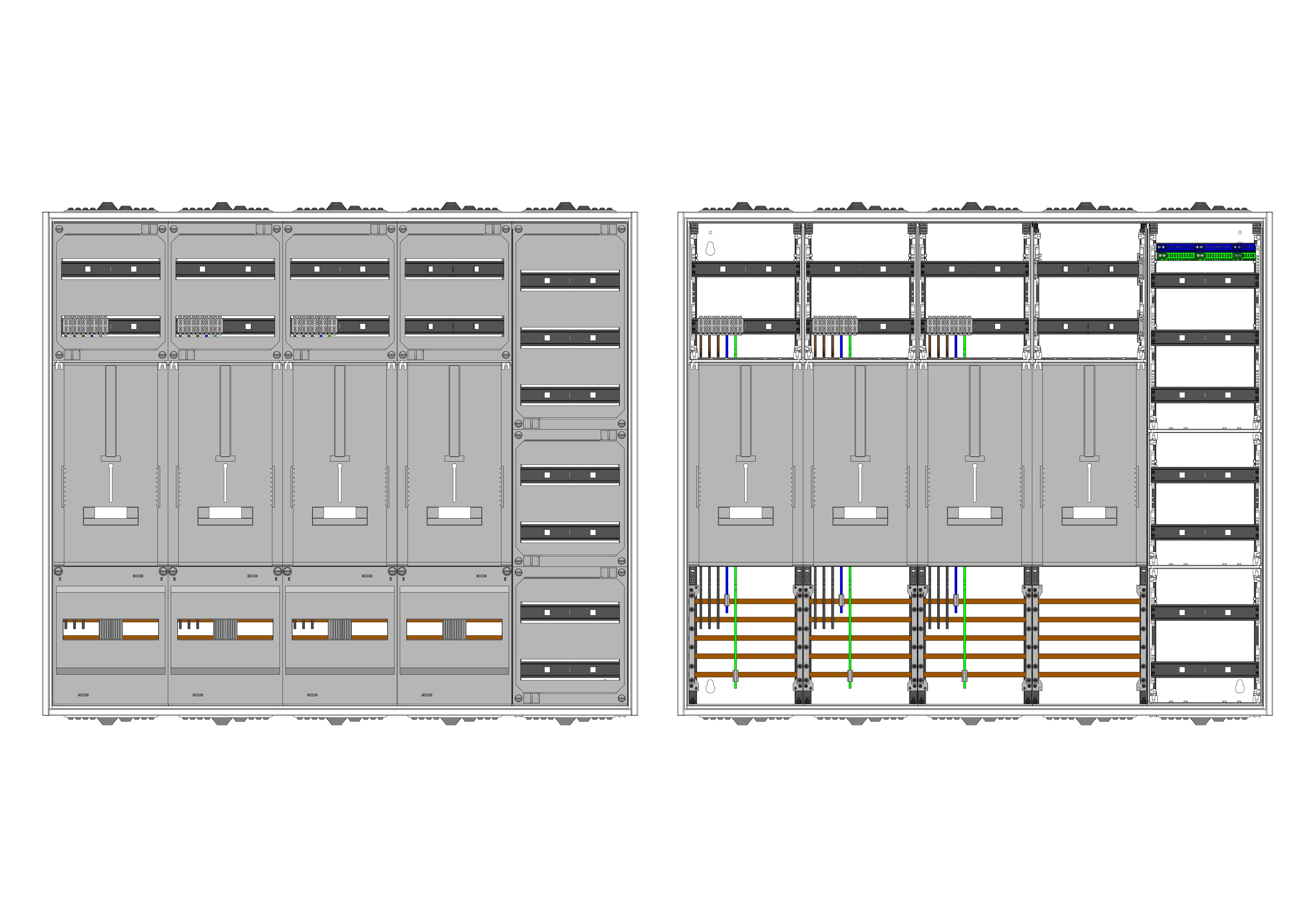 AZ52BS-210, Zählerverteilung HEART für Zählerplatz mit 3-Punktbefestigung nach VDE 0603, DIN43870, 4100:2019-04 für den Innenbereich für Wandbefestigung AP/UP, Fabr. Alphatec, BxHxT [mm] = 1300x1100x210, Schutzklasse II, IP41, RAL 9016, Bestehend aus: Gehäuse, Doppeltür mit Drehriegel, Flansche NF1 (oben + unten) und Berührungsschutzabdeckungen, Easy-Fix Befestigungssystem zur einfachen Aufhängung";" flexible Seitenleisten für eine einfache Hutschienenmontage auf verschiedenen Ebenen";" zusätzliche Klemmvorrichtungen für Steckklemmen";", aufgebaut wie folgt: 3x Zählerplatz, 1x TSG-Platte, 7x Hutschienen in Verteilerfeld 1 (12TE), inkl. Querverdrahtung, komplett zusammengebaut und verdrahtet gemäß VNB.0001