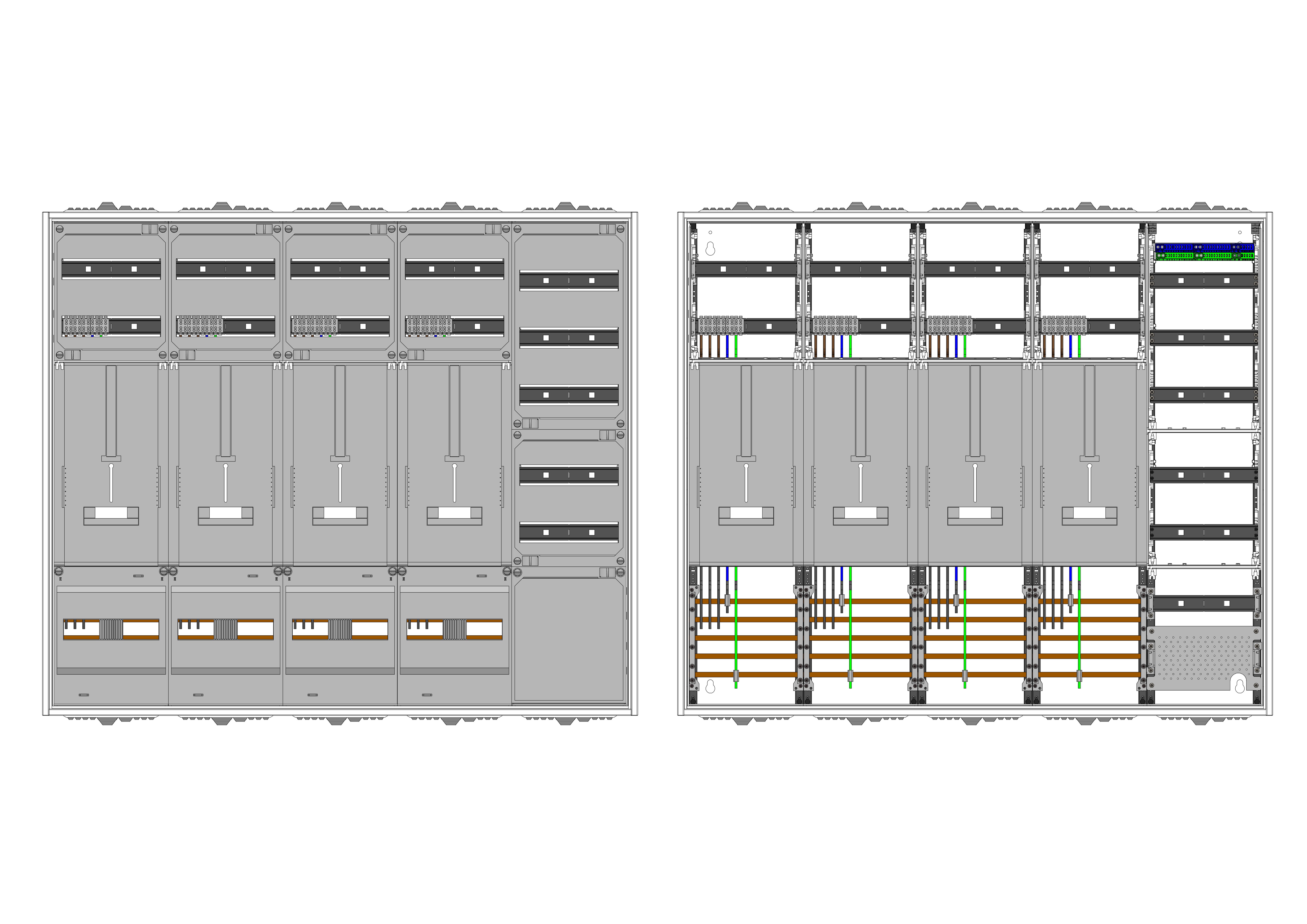 AZ52BSA-230, Zählerverteilung für Zählerplatz mit 3-Punktbefestigung nach VDE 0603, DIN43870, 4100:2019-04 für den Innenbereich für Wandbefestigung AP/UP, Fabr. Alphatec, BxHxT [mm] = 1300x1100x230, Schutzklasse II, IP54, RAL 7035, Bestehend aus: Gehäuse, Doppeltür mit Schwenkhebel für Profilhalbzylinder, Flansche SF45 (oben) und SF41 (unten) und Berührungsschutzabdeckungen, aufgebaut wie folgt: 3x Zählerplatz, 1x TSG-Platte, 5x Hutschienen in Verteilerfeld 1 (12TE), 1x APZ in Verteilerfeld 1, inkl. Querverdrahtung, komplett zusammengebaut und verdrahtet gemäß VNB.0001