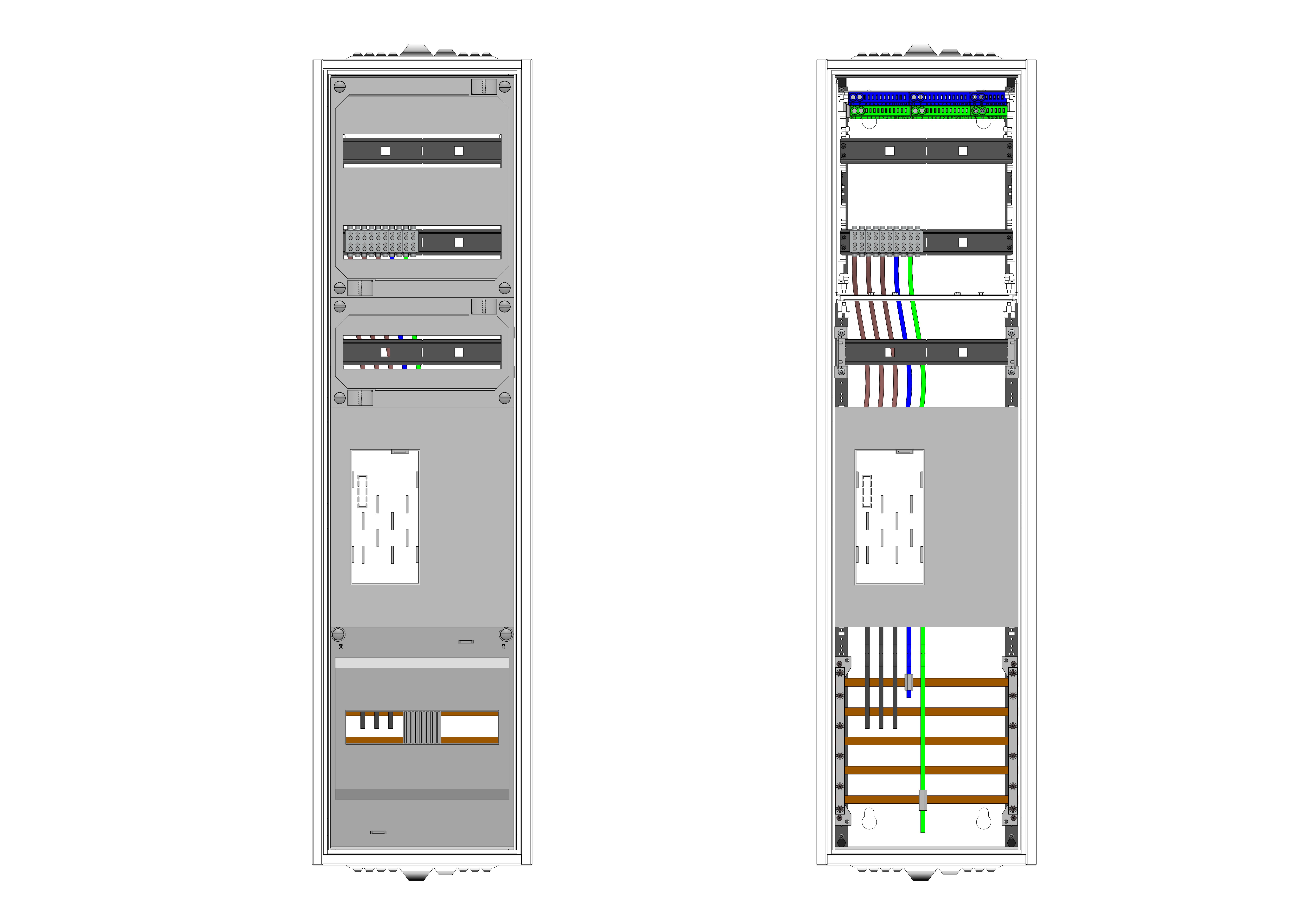 AEZ12-210-001, eHZ-Zählerverteilung HEART nach VDE 0603, DIN43870, 4100:2019-04 für den Innenbereich für Wandbefestigung AP/UP, Fabr. Alphatec, BxHxT [mm] = 300x1100x210, Schutzklasse II, IP41, RAL 9016, Bestehend aus: Gehäuse, Einzeltür mit Drehriegel, Flansche NF1 (oben + unten) und Berührungsschutzabdeckungen, Easy-Fix Befestigungssystem zur einfachen Aufhängung";" flexible Seitenleisten für eine einfache Hutschienenmontage auf verschiedenen Ebenen";" zusätzliche Klemmvorrichtungen für Steckklemmen";" aufgebaut wie folgt: 1x Zählerplatz, komplett zusammengebaut und verdrahtet gemäß VNB.0001